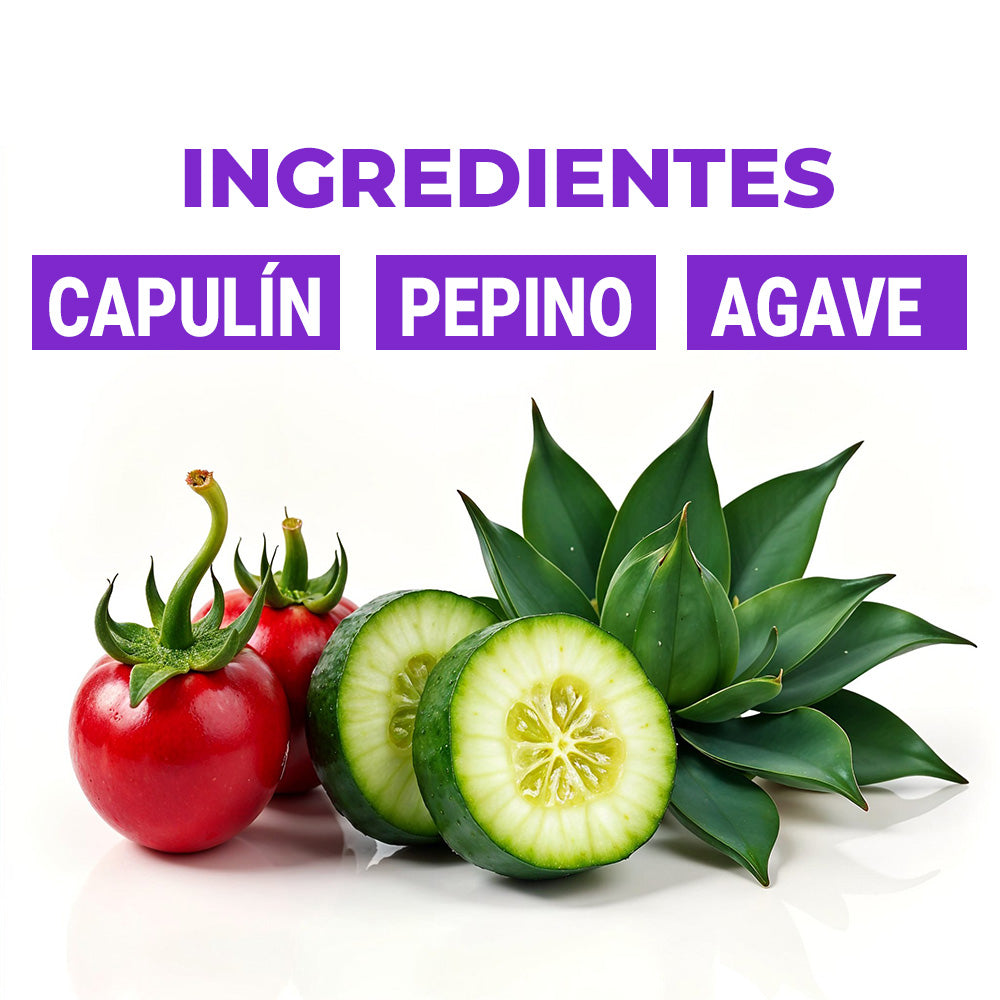 Fitocomplejo de salvia, bardana, tormentilla y gobernadora: controla brotes y equilibra la grasa.