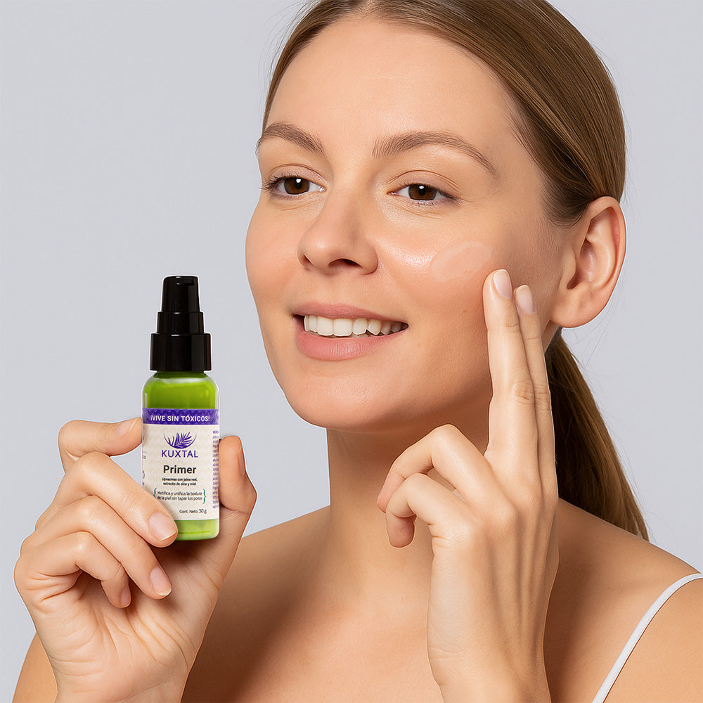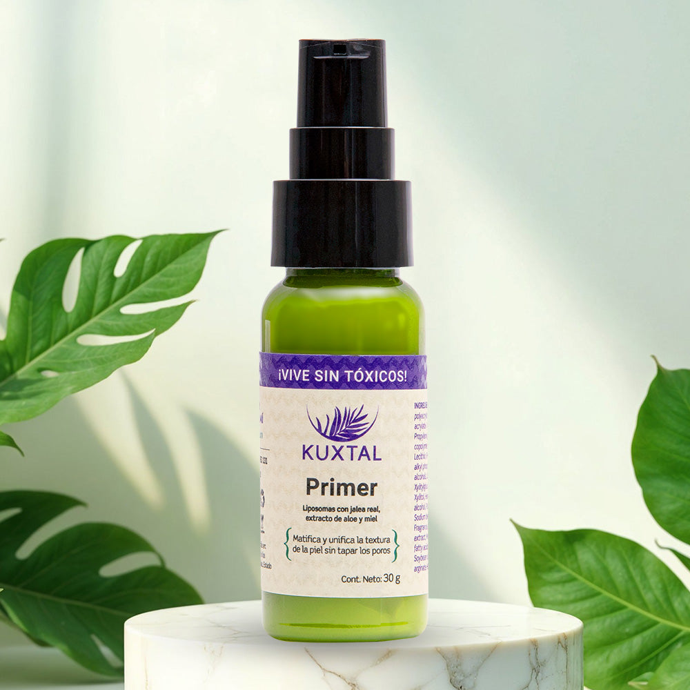 El Primer Kuxtal con liposomas de jalea real, extracto de aloe y miel es la base ideal para preparar tu piel antes del maquillaje. Su fórmula natural hidrata, suaviza e iguala el tono, ayuda a minimizar los poros y prolonga la duración de la base. Actúa como una capa protectora que perfecciona el cutis, dejando un acabado suave, terso y mate. Libre de siliconas y no comedogénico, nutre la piel mientras proporciona un aspecto radiante y saludable.